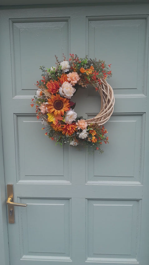 This wreath is made on a 30cm natural wicker base and measures approx. 50cm at its widest point tip to tip.